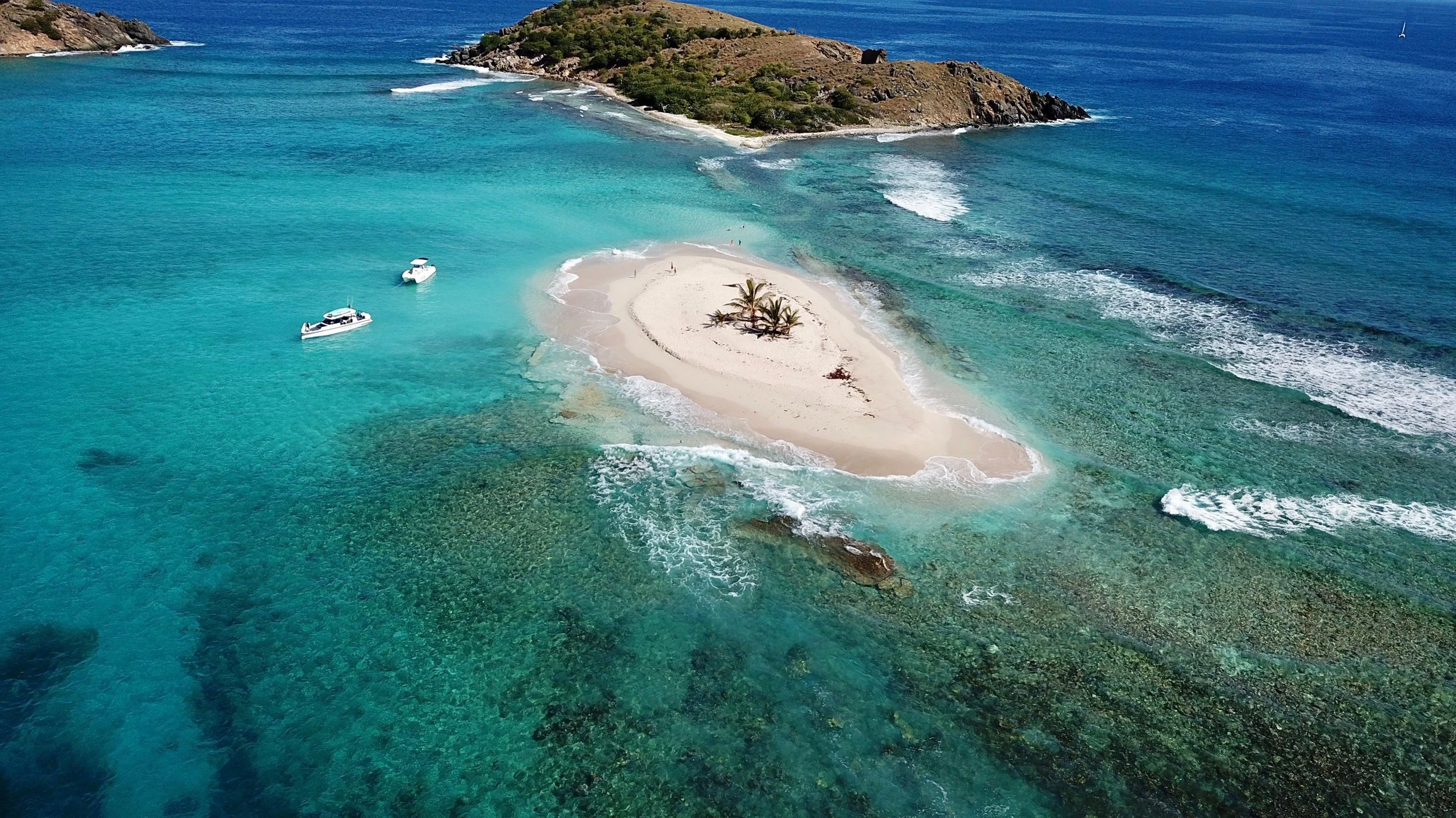 Sandy Spit is a tiny, uninhabited islet near Jost Van Dyke, known for its iconic "desert island" look with a ring of soft sand, light vegetation, and crystal-clear waters. Often featured in commercials and magazine covers, it offers a classic Caribbean experience ideal for photos, relaxation, and snorkeling. Only accessible by boat, itโs a popular stop for St. John boat charters. Surrounded by a vibrant coral reef and a shallow snorkeling wall on the south side, Sandy Spit is a must-visit highlight of any trip to the British Virgin Islands.