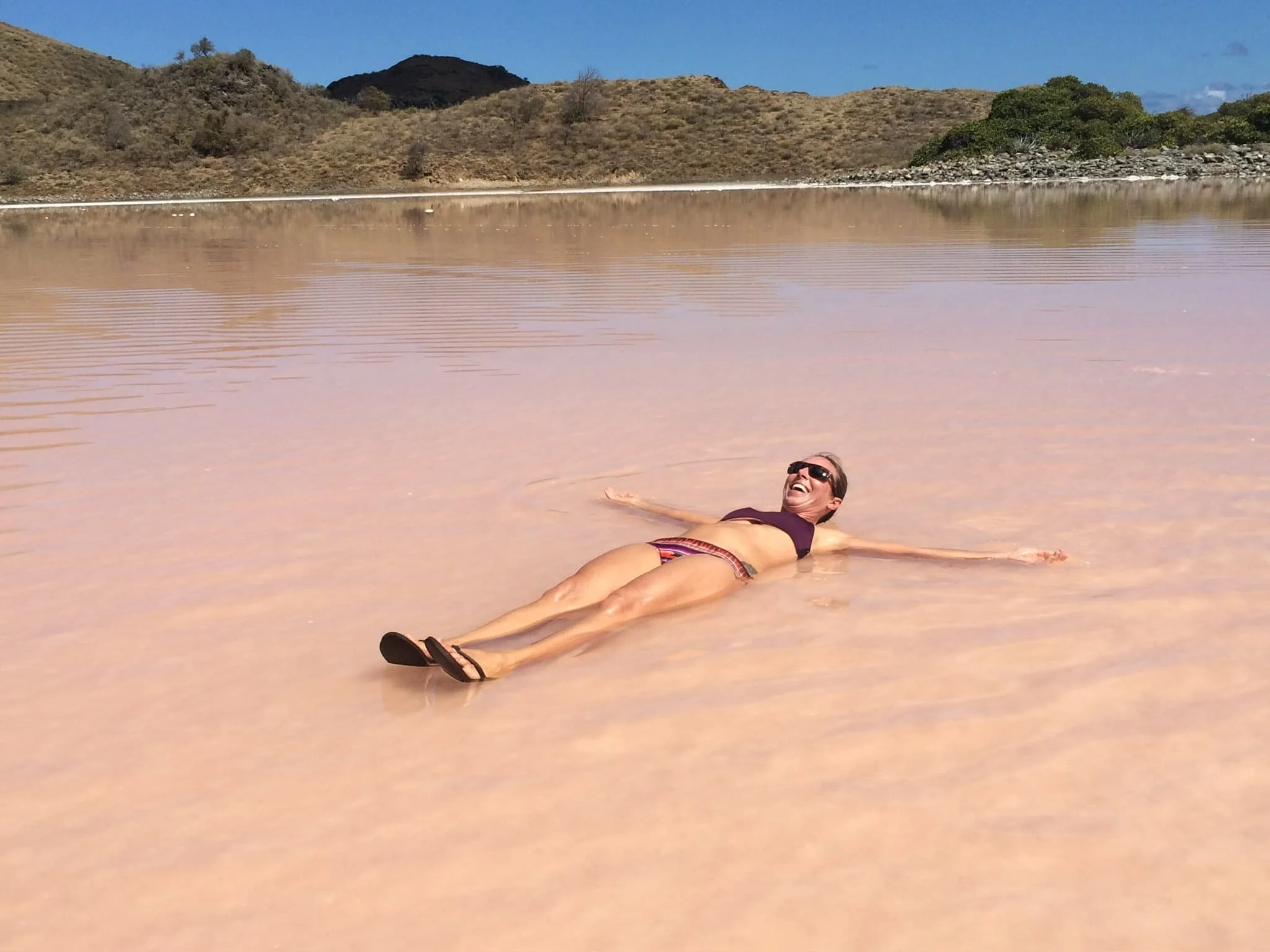Image: Jill Siska, co-owner of Island Roots Charters, floating in a salt pond on Salt Island / Credit: Island Roots Charters