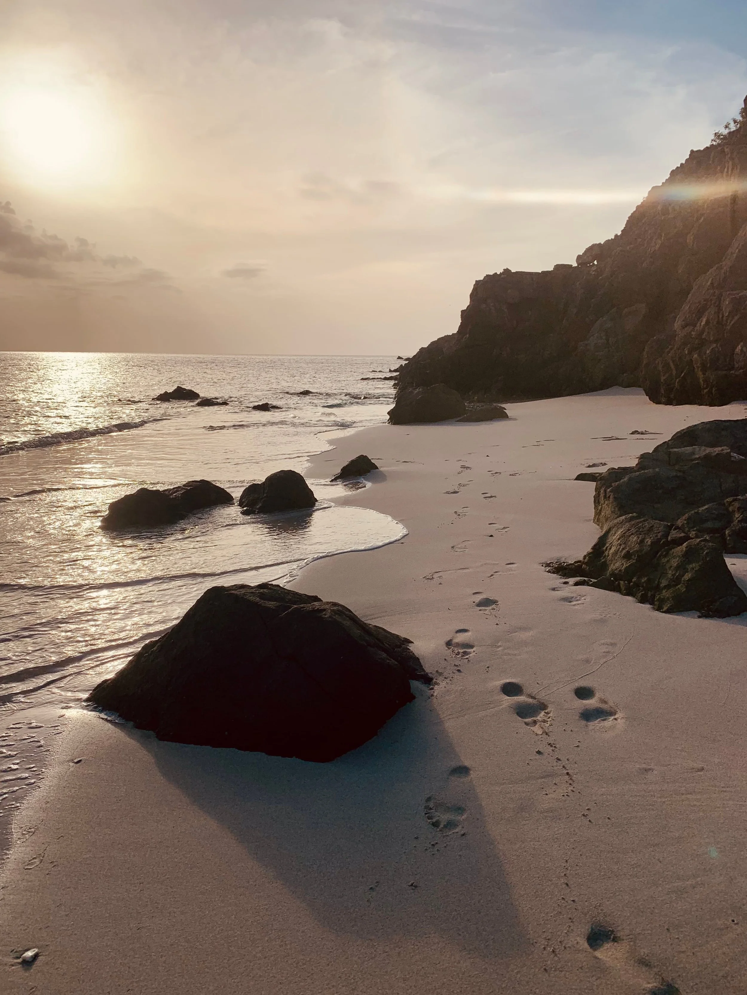 Lovango Cay is a 118-acre private island a 10-minute charter boat ride northwest of Cruz Bay. Most people who visit spend their time at the Lovango Resort and Beach Club on the south side, but the secret beach on Lovango is Crescent Beach on the north side. It can only be reached by hiking a 20-minute trail from the resort or by pulling a boat directly into the protected northern cove, which is where we come in.